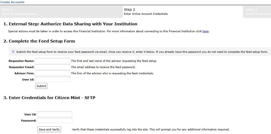 Step 5: Enter feed credentials in AccountView and aggregate accounts.