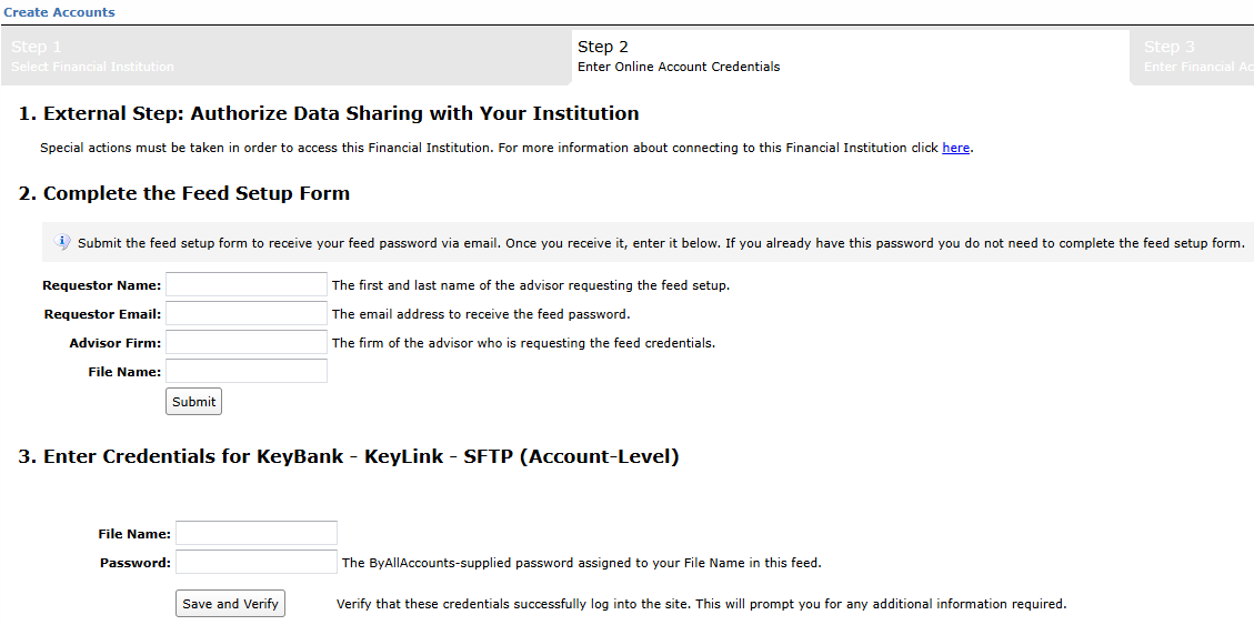 Step 2: KeyBank will provide the Advisor/Firm with their File Name (used to configure data at ByAllAccounts).
