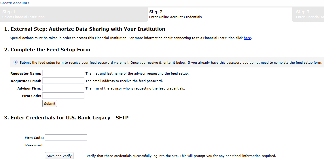 Feed access pre-requisitesThis service uses file extracts delivered to U.S. Bank's SFTP server and prepared for Morningstar ByAllAccounts to download account information.